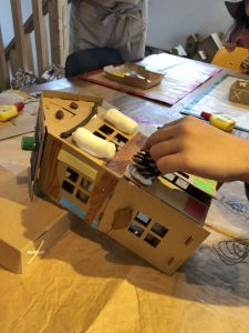 普段から2歳児からを対象に展開しているダンボールハウス作りですが、ほぼ全員が未就学児でこれだけ一緒に作ることは恐らく初めて。