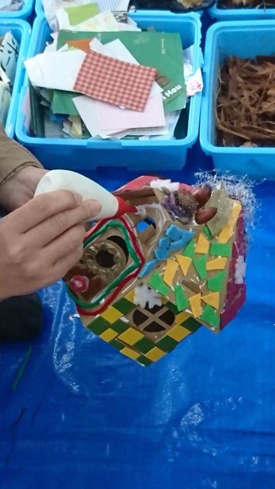 収穫祭でのダンボールハウス作りも8回目となり、毎年恒例の企画と位置付けていただいているようです。2010年から毎年参加していますとお話してくださったご家族は、毎年増えていくそれらのハウスを家族の思い出としてずっと飾ってくださっているそうです。小さな町が出来ているようですよ、と。