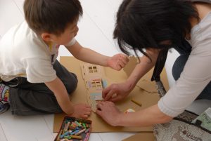 ダンボール製のミニチュアハウス作りです。