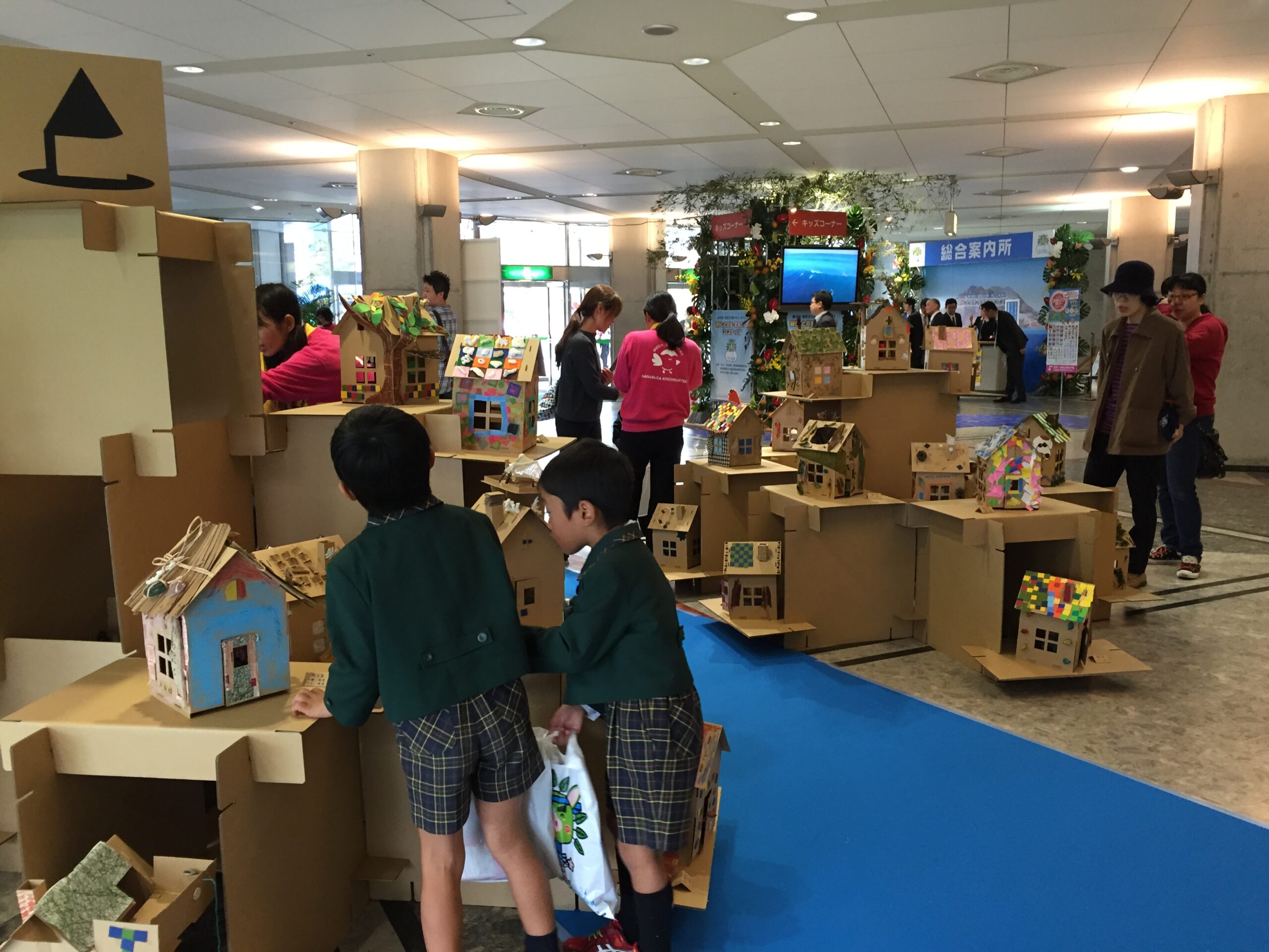 また、同会場内でもダンボールハウス作りを実施し、鹿児島市や県外の子どもたちやご家族などが、島の子どもたちの作品を眺めながらハウス作りを行いました。
