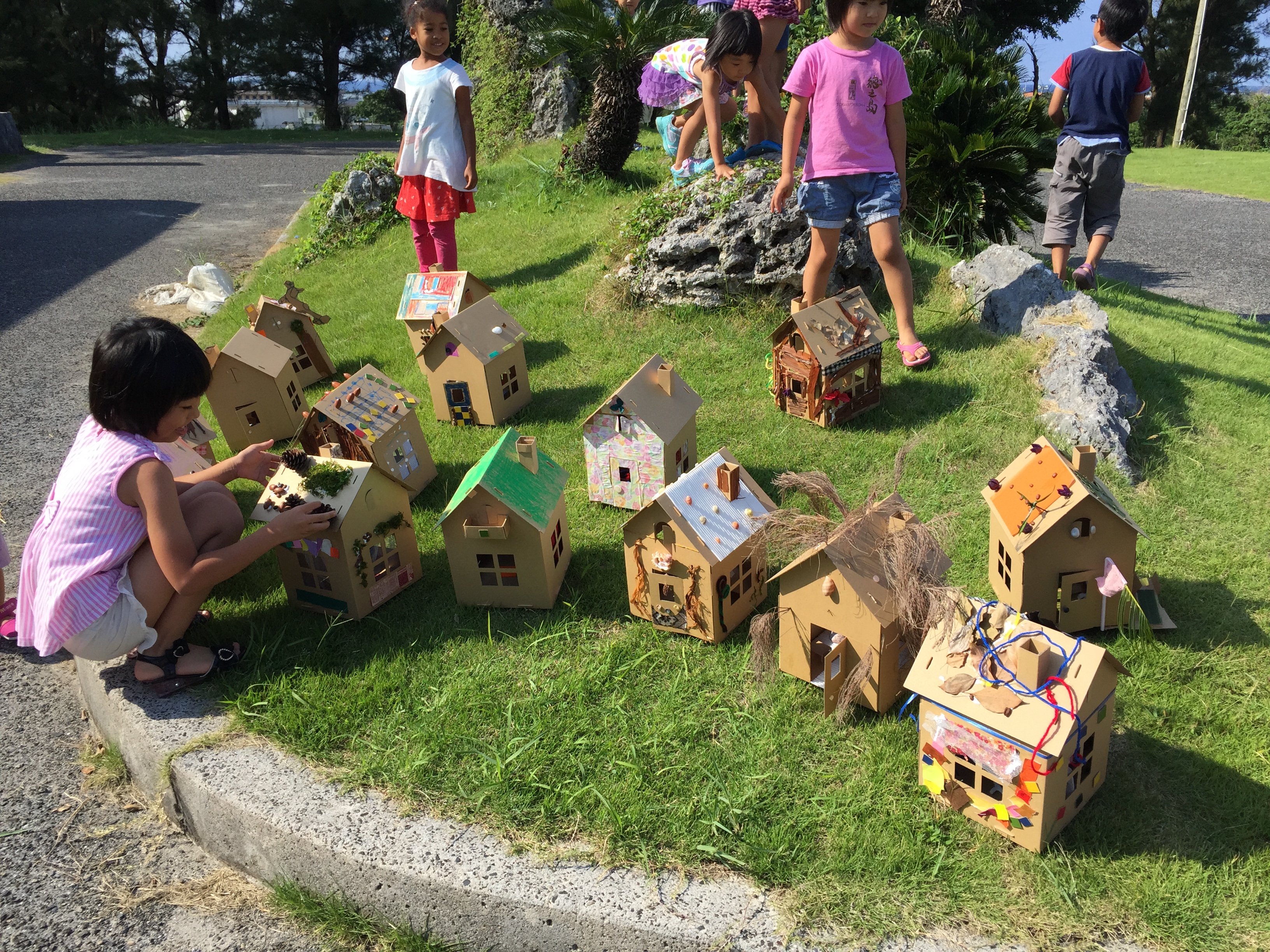 離島をつなぐ巡回ワークショップ「ダンボールハウス作り」