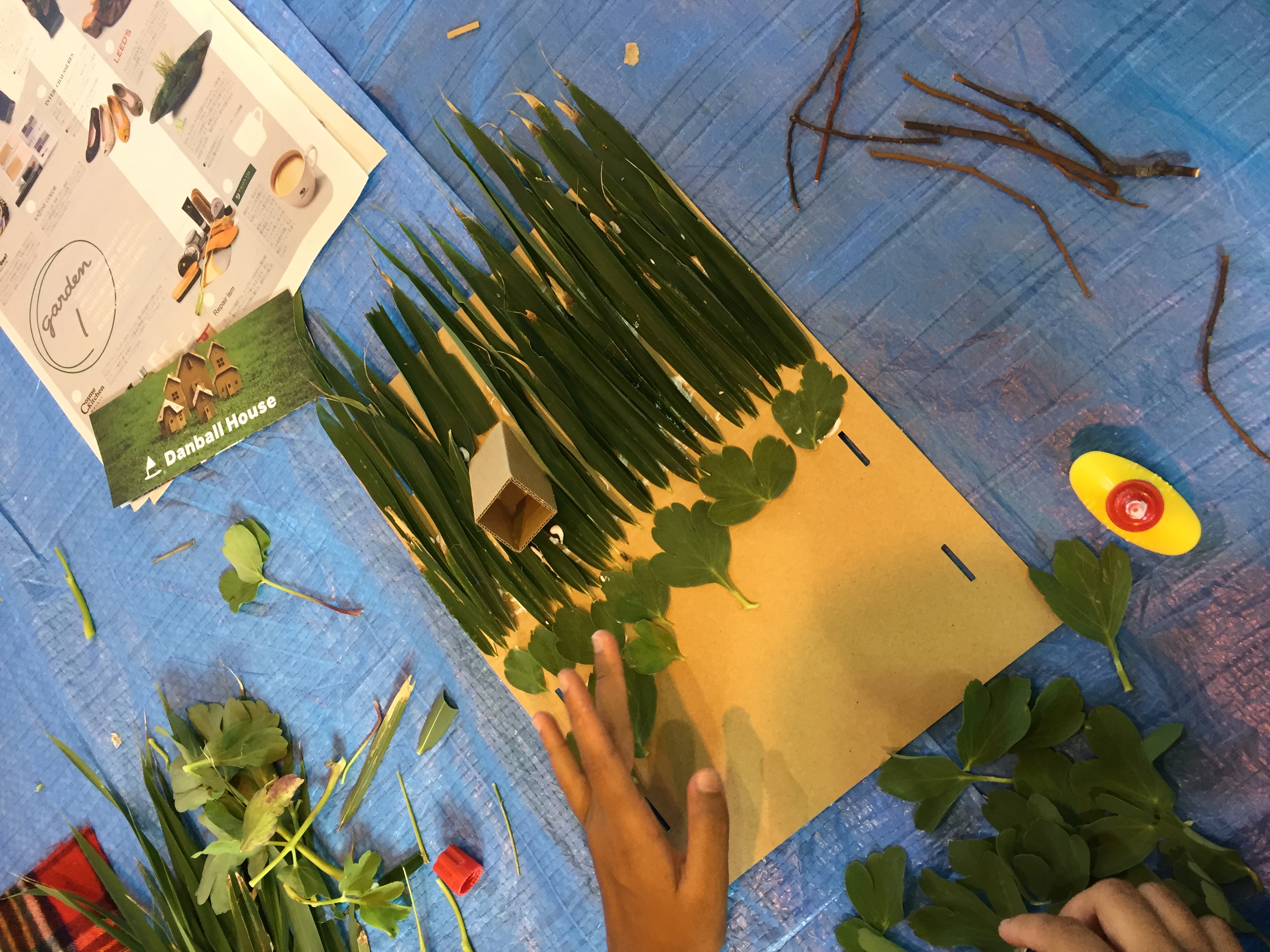 ※ダンボールハウスワークショップ ダンボール製のミニチュアハウス作りです。 のりもはさみも使わずに簡単に組み立てることができます。 好みの材料を貼りつけたりクレヨンなどで装飾します。